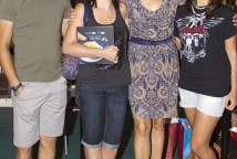 - Pili, con su marido Ángel, y sus hijas Andrea y Cristina. venían de Barberá del Vallés y arrasaron con los libros que quedaban: los querían dedicados para Geli, Inma y Pilar, hermana, cuñada y madre. Ya les dije qué mérito tenían por haber venido, y jugando el Barça en esos momentos.