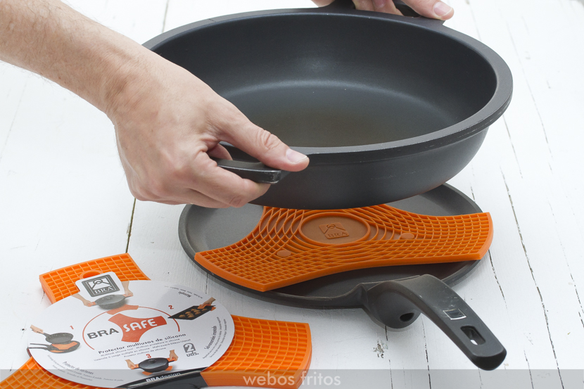 Esta pieza de silicona impide que las sartenes se rocen entre sí al almacenarlas apiladas.
